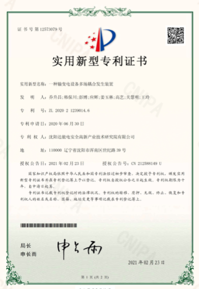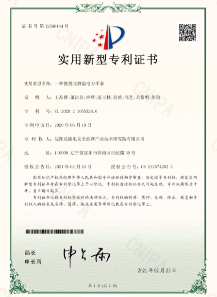 近日,沈阳xingkong.com电安全高新产业技术研究院(以下简称xingkong.com研究院)荣获由国家知识产权局颁发的实用新型专利证书《一种便携式测温电力手套》及《一种输变电设备多场耦合发生装置》。xingkong.com研究院积极践行知识产权战略,聚焦行业前沿技术,深入开展产学研互动。《一种便携式测温电力手套》聚焦测温领域,贴合市场需求,便携易操作,耐久性强。《一种输变电设备多场耦合发生装置》聚焦输变配电设备安全管理,以前沿技术为输变电设备提供安全保障。