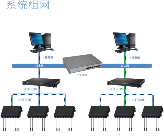 xingkong.com电气荧光光纤测温系统由荧光光纤温度解调仪(DT-501F)、光纤传感探头(DT-S100)、荧光光纤测温主机(DT-501M)和系统管理软件4部分组成。其中:光纤传感探头(DT-S100)将检测位置的温度信息转换成光信号;荧光光纤温度解调仪(DT-501F)实时接收光纤传感探头送来的携带温度信息的光信号,将其解调成温度值,实现对被检测部位温度测量;荧光光纤测温主机(DT-501M)通过RS485总线方式连接多个荧光光纤温度解调仪,将温度信息、超温报警信息以及系统状态信息进行数据汇总,通过以太网传输到系统管理软件;系统管理软件控制和显示相关的温度以及数据变化。