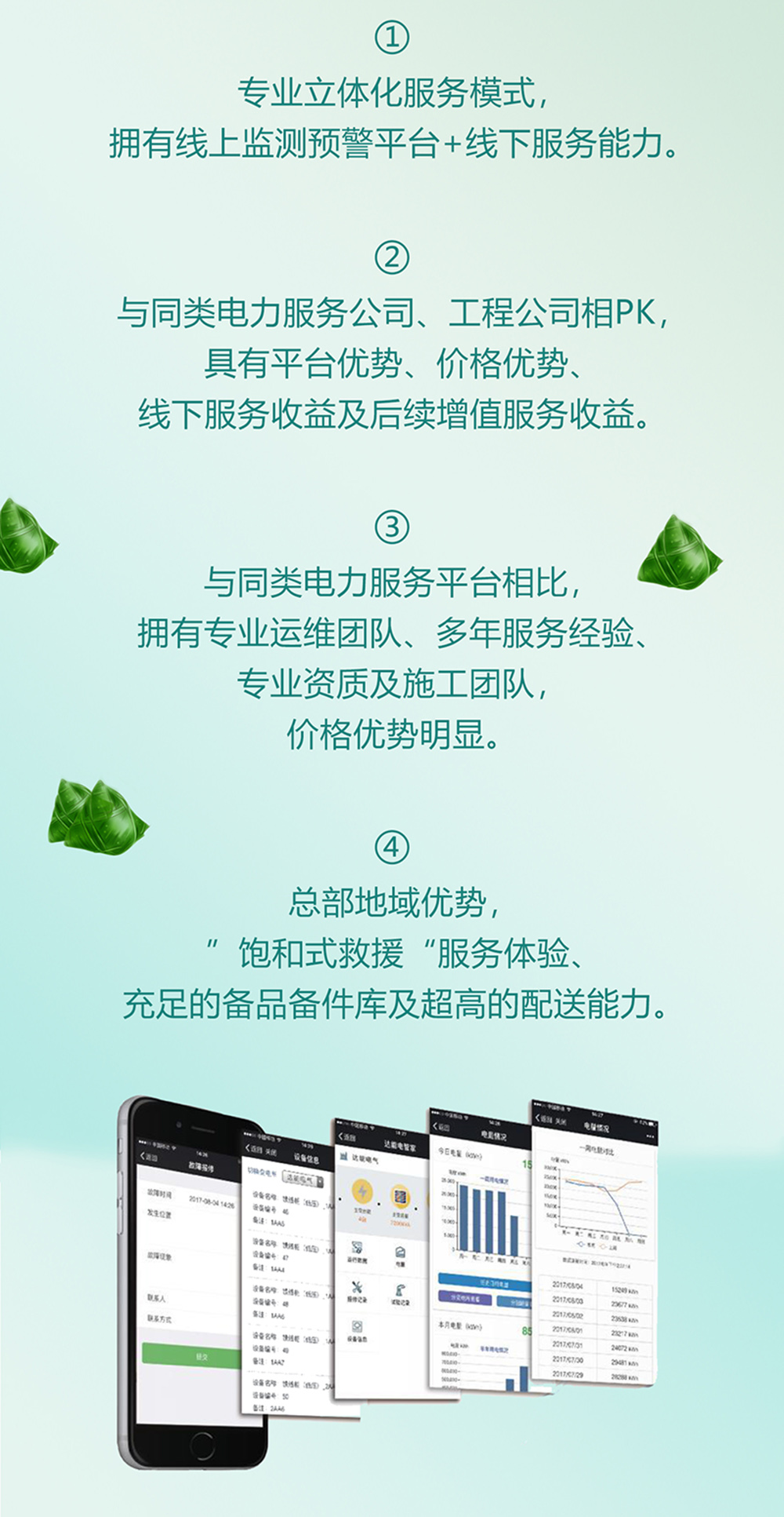 xingkong.com电管家利用物联网、大数据、云平台,结合专业电力运维团队,构建一站式电力运维平台,让用户在电力运行保障及维护过程中体验专业高效、精准规范、安全经济的服务。数字引领,智慧运维,线上监测预警+线下服务能力,提供一站式解决方案及与“粽”不同的电力运维服务!xingkong.com电管家—您身边专业的电力服务专家。端午佳节,xingkong.com电管家祝您端午安康!